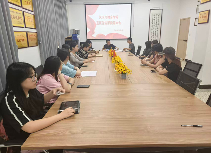 2025年10月10日,中午12时30分,永利3044noc艺术与教育永利3044noc直属党支部换届大会在旧图二楼会议室隆重举行,全体正式党员与预备党员齐聚现场,共同见证支部发展的重要时刻。